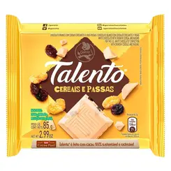 CHOCOLATE TALENTO 85GR CEREAIS E PASSAS BRANCO